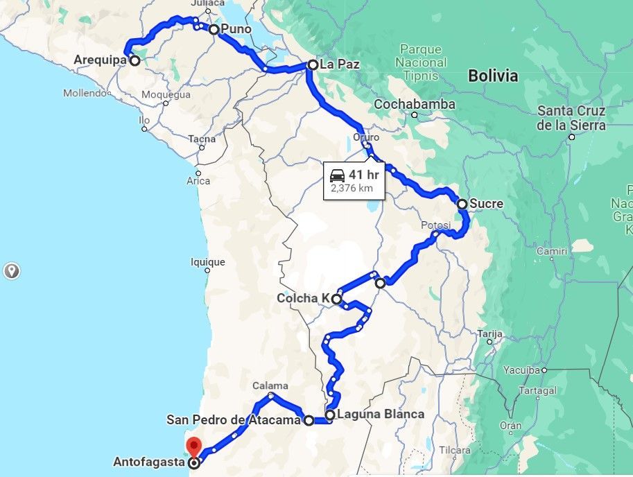 Otra gran parte de nuestro viaje ha terminado. Nos estamos alejando cada vez más del ecuador y adentrándonos más en el hemisferio sur. Un nuevo tramo comienza con Bolivia y continúa hasta Chile. La altitud media de nuestro viaje es de unos 4.000 metros sobre el nivel del mar, es indescriptible.