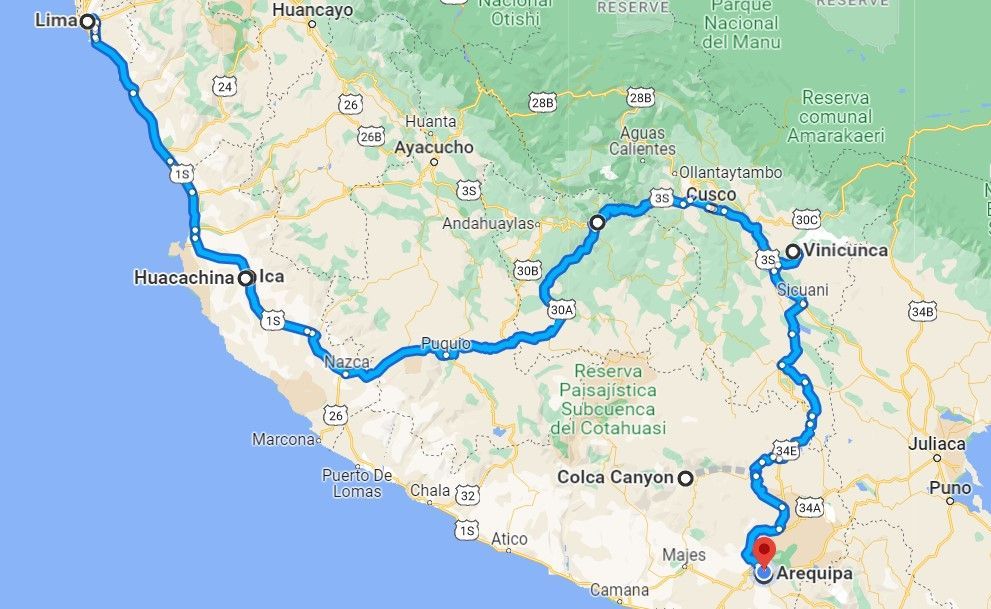 15 de julio de 2023 – Arequipa, la ciudad blanca al pie del Misti, manejamos desde Cusco hasta las Montañas de Colores y dentro del Cañón del Colca para llegar aquí